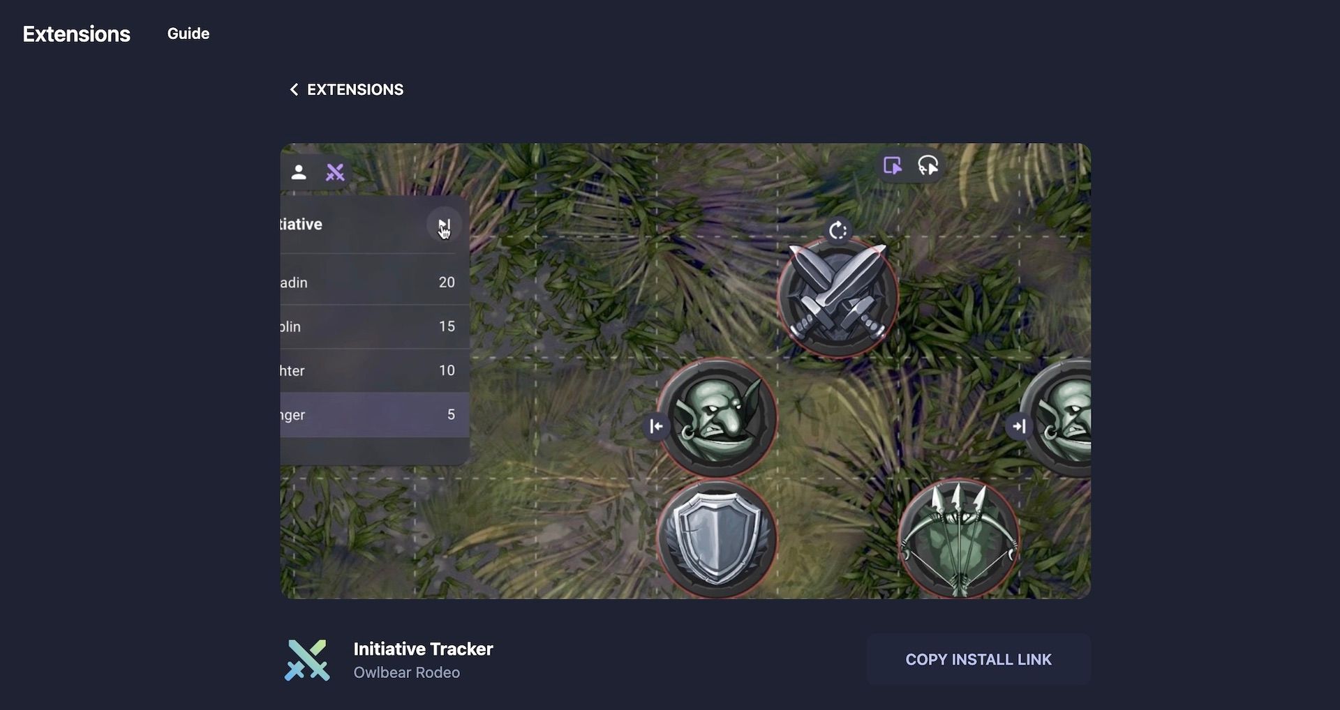When we started on Owlbear Rodeo 2.0 we knew extensions would be a big part of our new design philosophy. Owlbear Rodeo has always been built around providing an easy to learn but minimal tabletop experience. With 2.0 we knew we still wanted this to be the case but we wanted the site to grow with the user. From the start we envisioned extensions as the way to accomplish this. Similar to playing a tabletop game in person. We could provide the flexible base experience and each group can then choose their favorite dice roller, initiative tracker or fancy fog to layer on top.