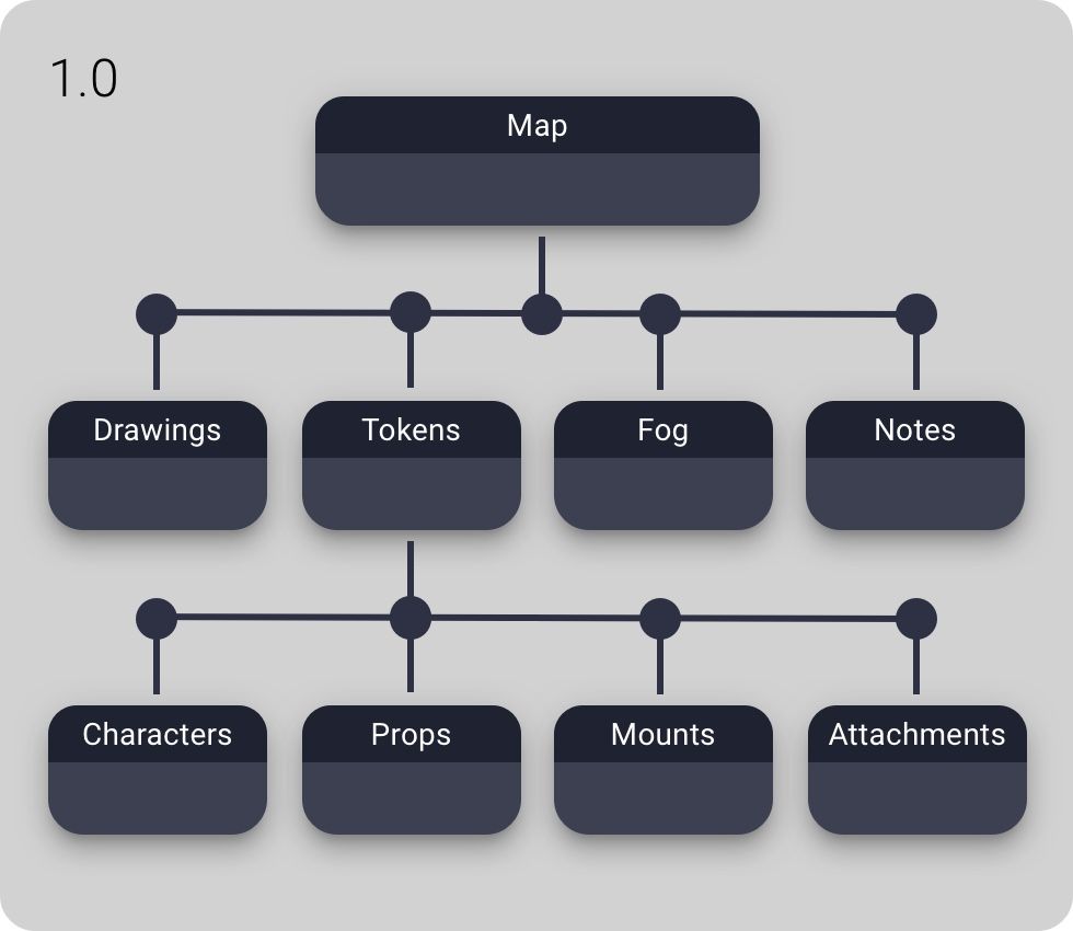 Looking at the new structure you'll also notice the token categories from 1.0 (Characters, Props, Mounts, Attachments) have also moved up the structure and replaced the general Tokens type.